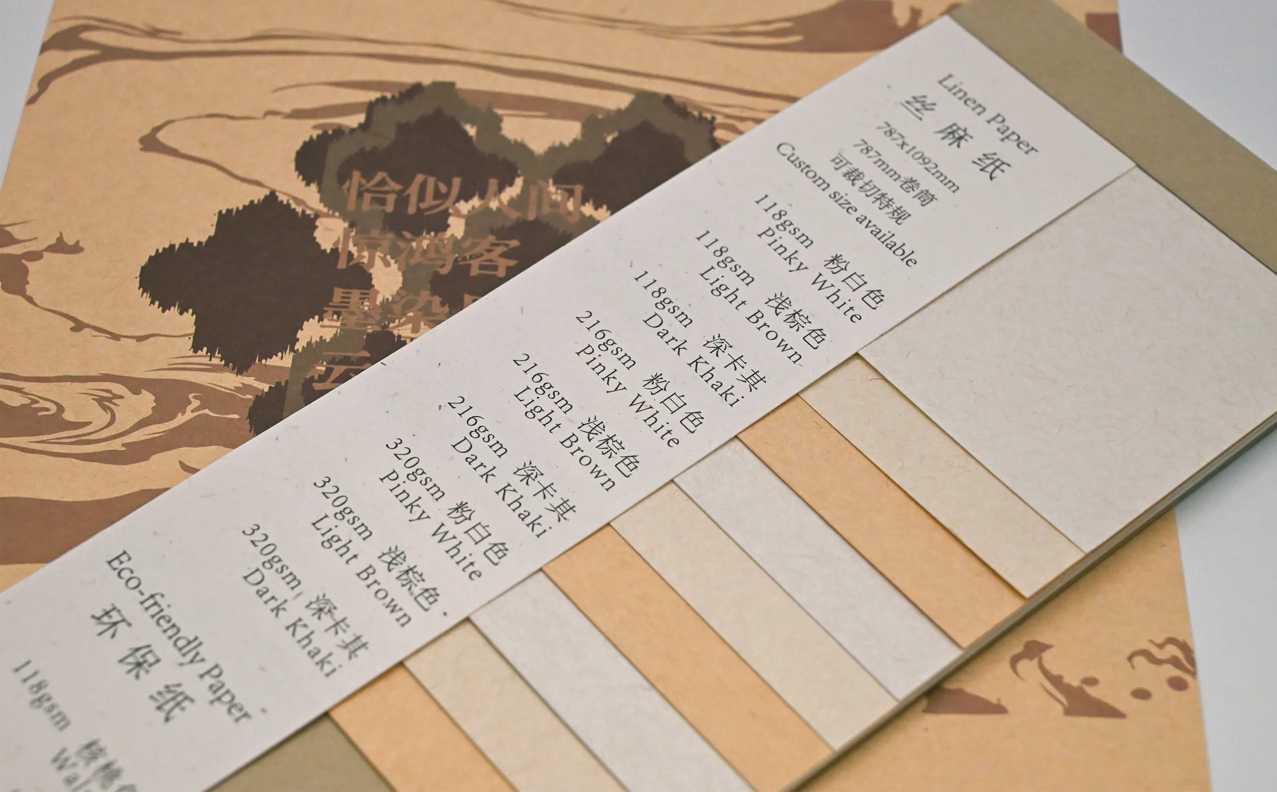Originating from the ancient art of papermaking, special eco-friendly pulps are added during the process to preserve the paper’s surface color and texture, creating a natural, rustic look with a classic yet distinctive visual effect. It is ideal for both classic and modern applications, including premium magazine covers, title pages, gift box packaging, greeting cards, wine labels, luxury shopping bags, calendars, invitations, and envelopes, and is especially well-suited for hang tags and product manuals.